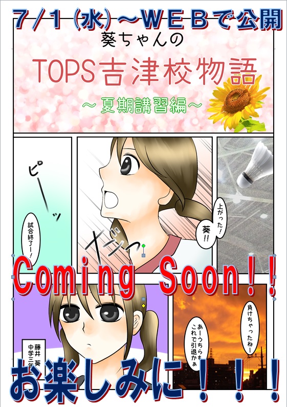 Coming Soon!! WEBマンガ「TOPS吉津校物語〜夏期講習編〜」を7月1日(水)〜WEBで公開します。